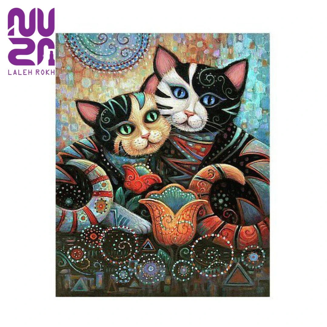 نقاشی با نگین های الماسی طرح دو گربه رنگارنگ کد 5062 | Diamond painting two colorful cats code 5062