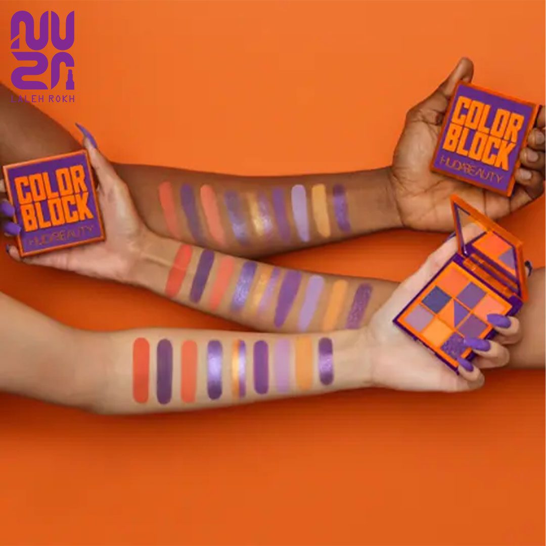 سایه چشم 9 رنگ کالر بلاک اورنج و بنفش هدی بیوتی 7.5گرم|Hudabeauty eyeshadow 9 palette color block orange and puprle