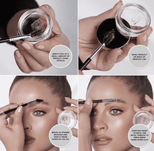 نحوه استفاده: برس قابل انعطاف را تنظیم کرده و دقت کنید که ابروهایتان کاملا تمیز باشد و هیچگونه پودر و آرایشی روی آن نباشد. سپس با مقداری از وکس ابروهایتان را به سمت پایین شانه کنید و سپس به بالا شانه کنید. اگر میخواهید ابروهایتان کاملا بالا بماند با یک حرکت صاف با استفاده از ته براش ابرو ها را به بالا بکشید.