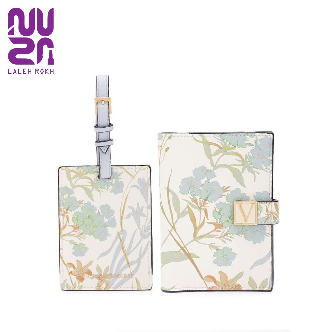 ست دو عددی کیف پاسپورتی + کیف کارتی گلدار ویکتوریا سکرت | Victoria’s Secret Women Floral Printed Passport Cover With ID Card Holder